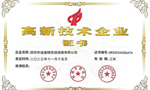 深圳市連盛精密連接器有限公司連續(xù)幾年獲得高新技術(shù)企業(yè)證書。